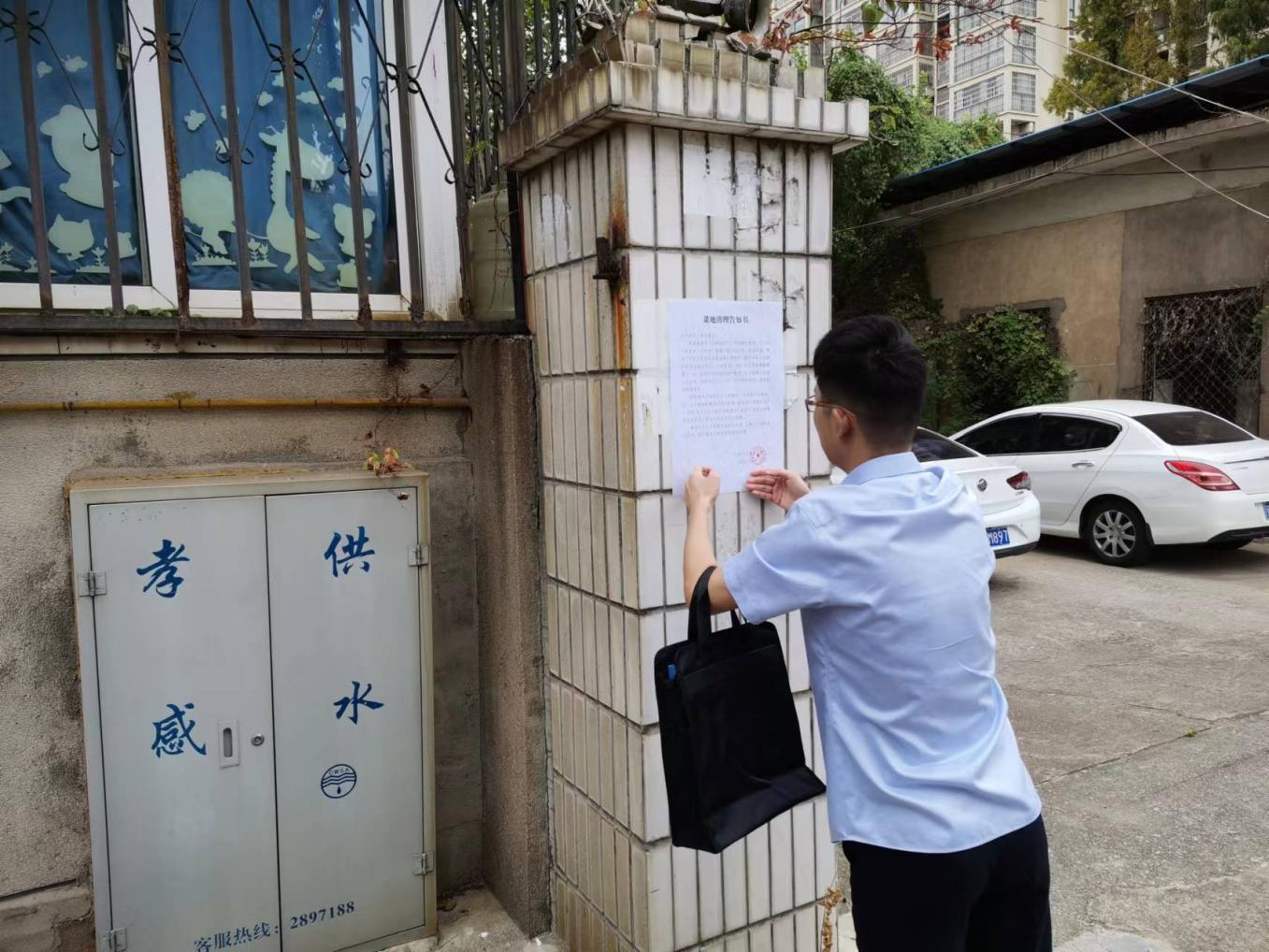 檢查小組一行到一水廠張貼了《菜地清理告知書》并對(duì)水廠宿舍樓周邊進(jìn)行察看。檢查發(fā)現(xiàn),除一水廠復(fù)式樓院墻邊小菜園外,原廢棄清水庫(kù)上面也有居民種菜,存在巨大安全隱患。