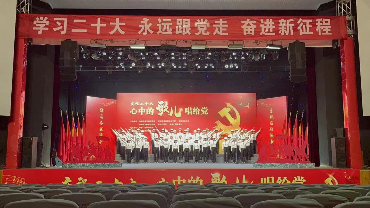 11月18日,我公司員工魯佳、劉琴作為澴川國投合唱隊員,參加了由中共孝感市委宣傳部、市委直屬機(jī)關(guān)工委、市總工會、市文化和旅游局、孝感日報社、孝感廣播電視臺主辦的“慶祝二十大 心中的歌兒唱給黨”孝感云傳唱活動。