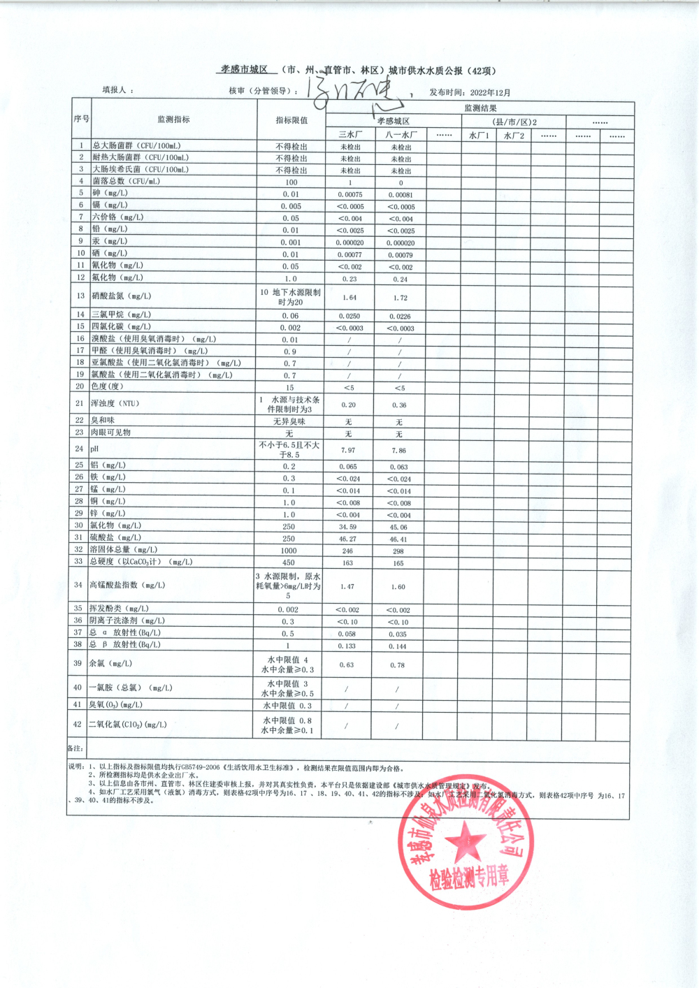 2022年12月水質(zhì)報告
