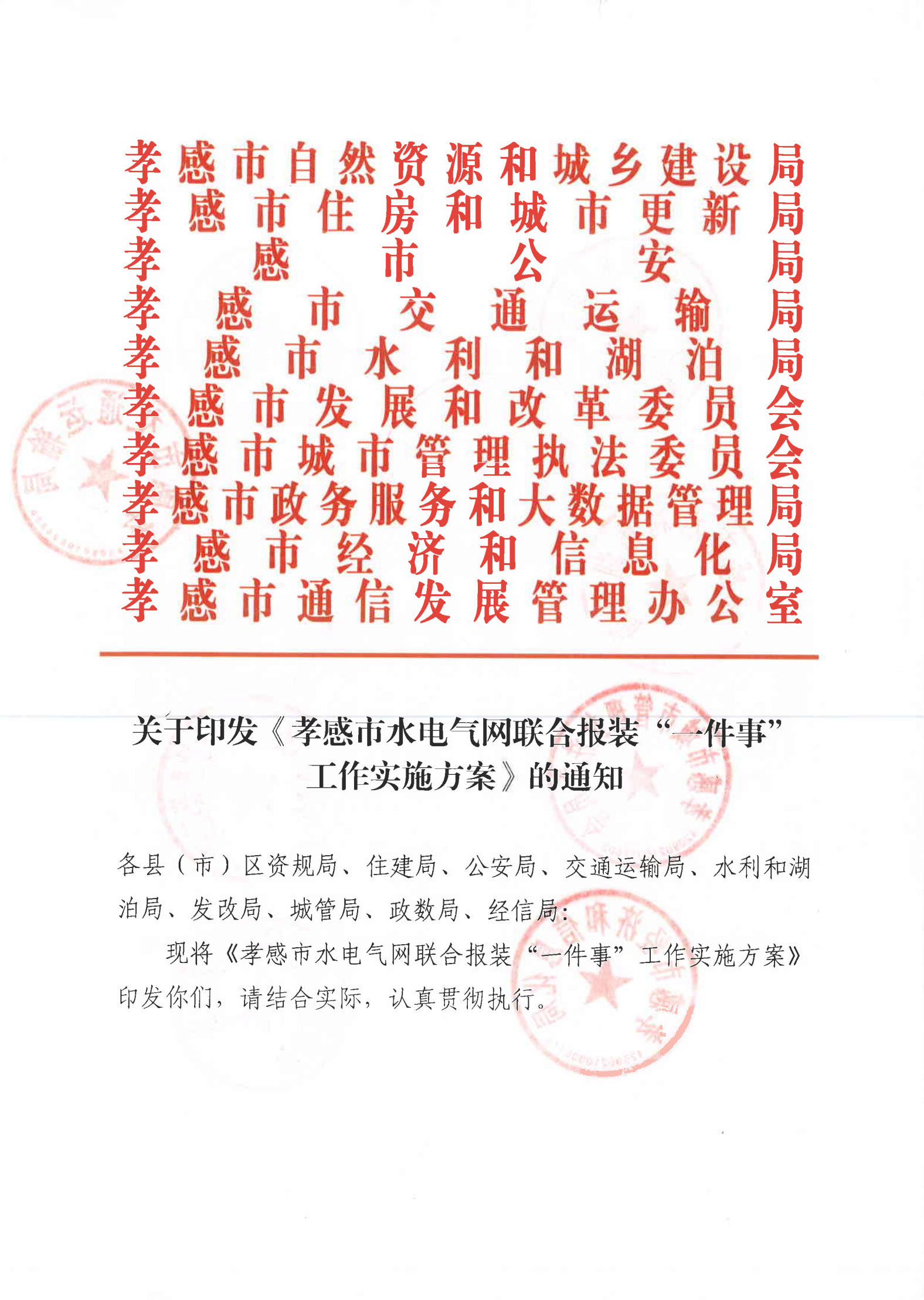 關(guān)于印發(fā)《孝感市水電氣網(wǎng)聯(lián)合報裝“一件事”工作實施方案》的通知