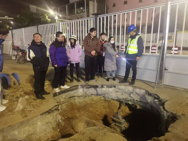 盡管寒風凜冽,施工現(xiàn)場卻是一片繁忙景象,燈火輝煌。挖掘機械設(shè)備緊張作業(yè),工人們有序地進行著供水管道連接前的準備工作。設(shè)計造價人員仔細觀察,詳細記錄,并不時向現(xiàn)場施工人員和技術(shù)人員提出問題,深入掌握施工流程和關(guān)鍵技術(shù)。