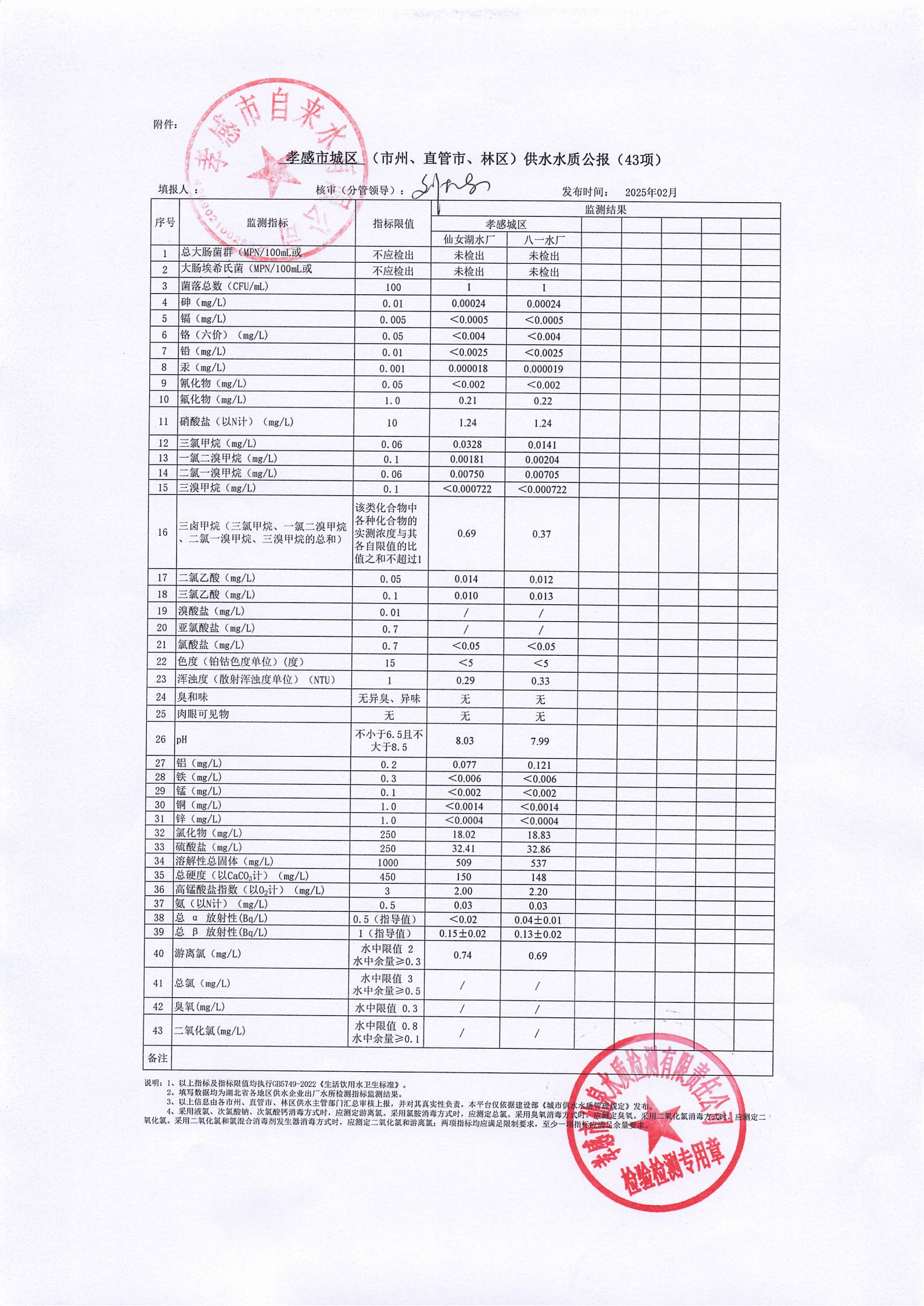 2025年2月水質(zhì)報(bào)告