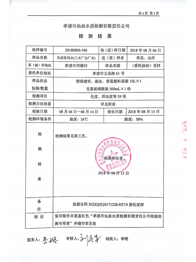 2018年8月水質(zhì)報(bào)告