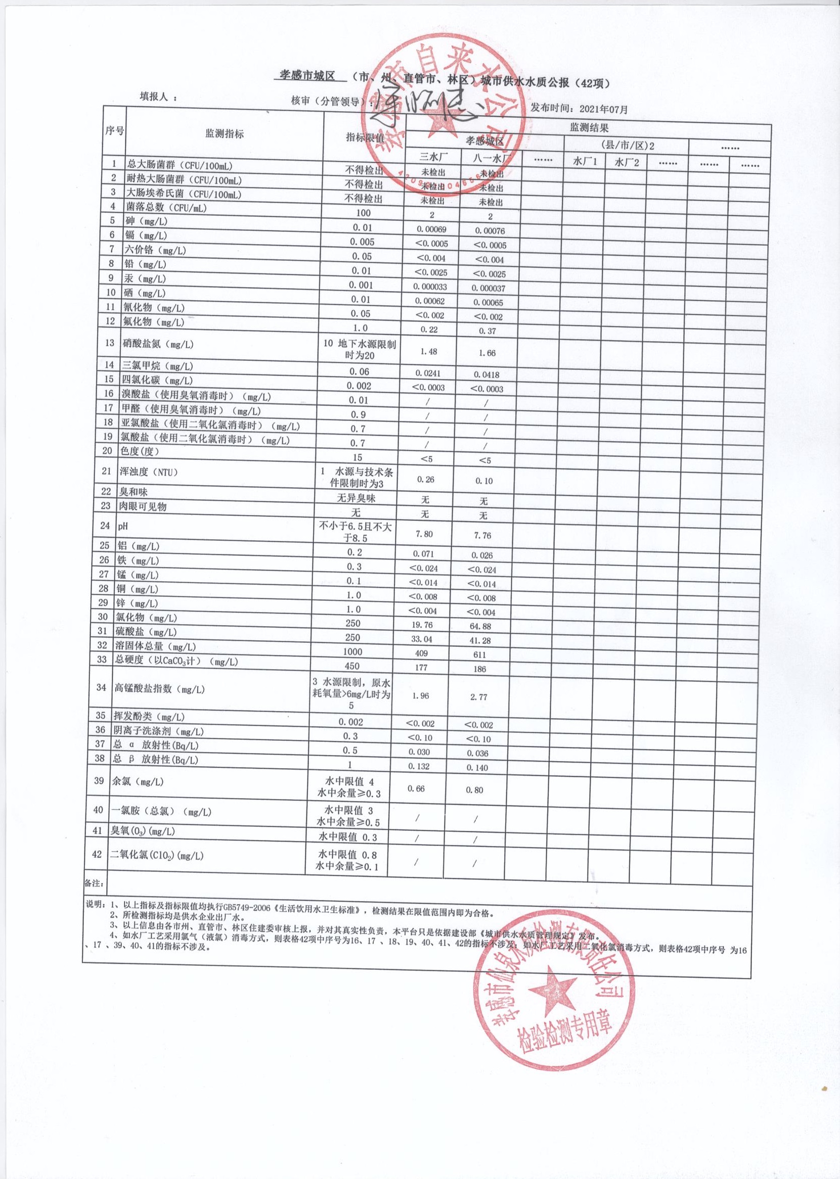 2021年7月水質(zhì)報(bào)告