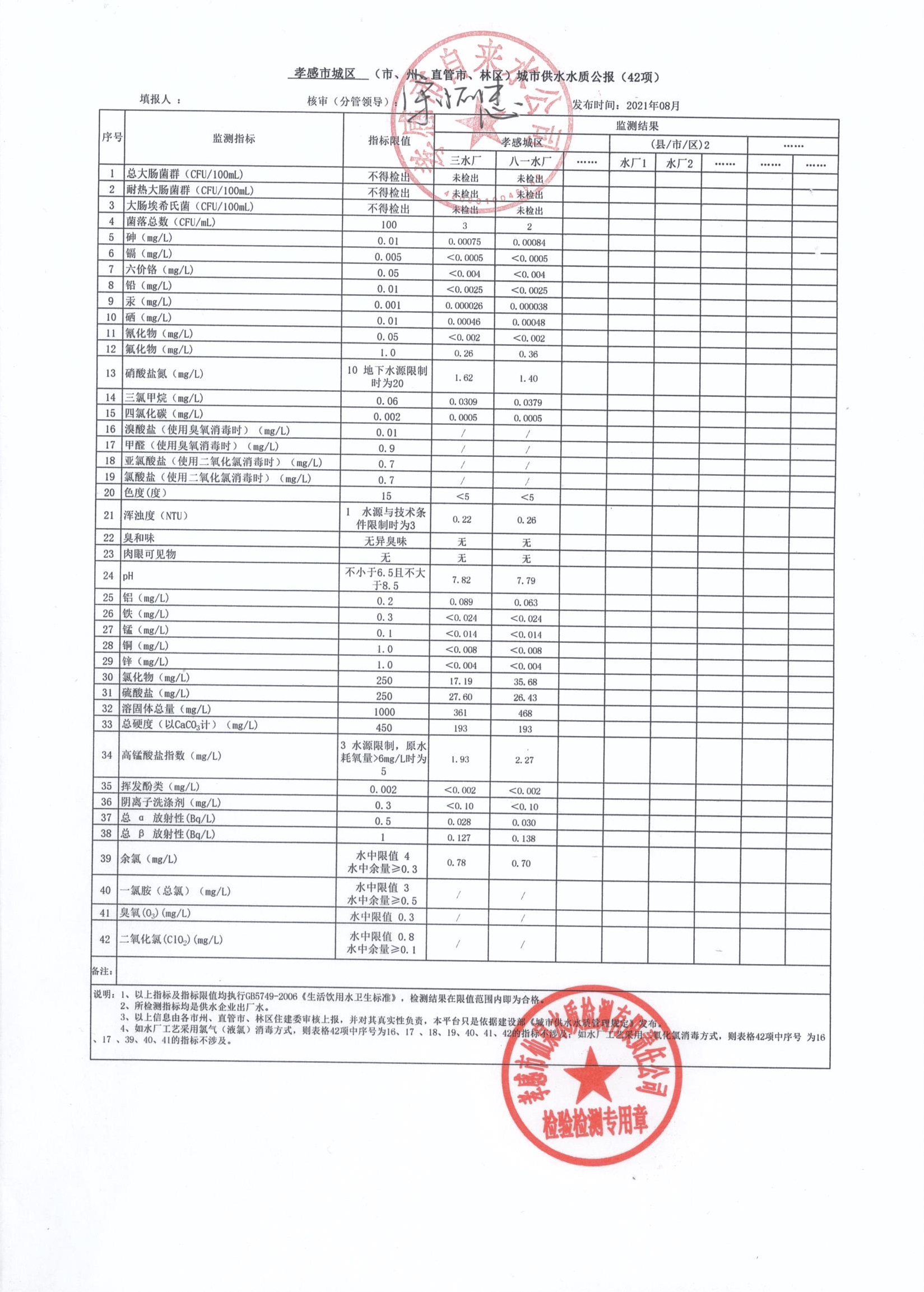 2021年8月水質(zhì)報(bào)告